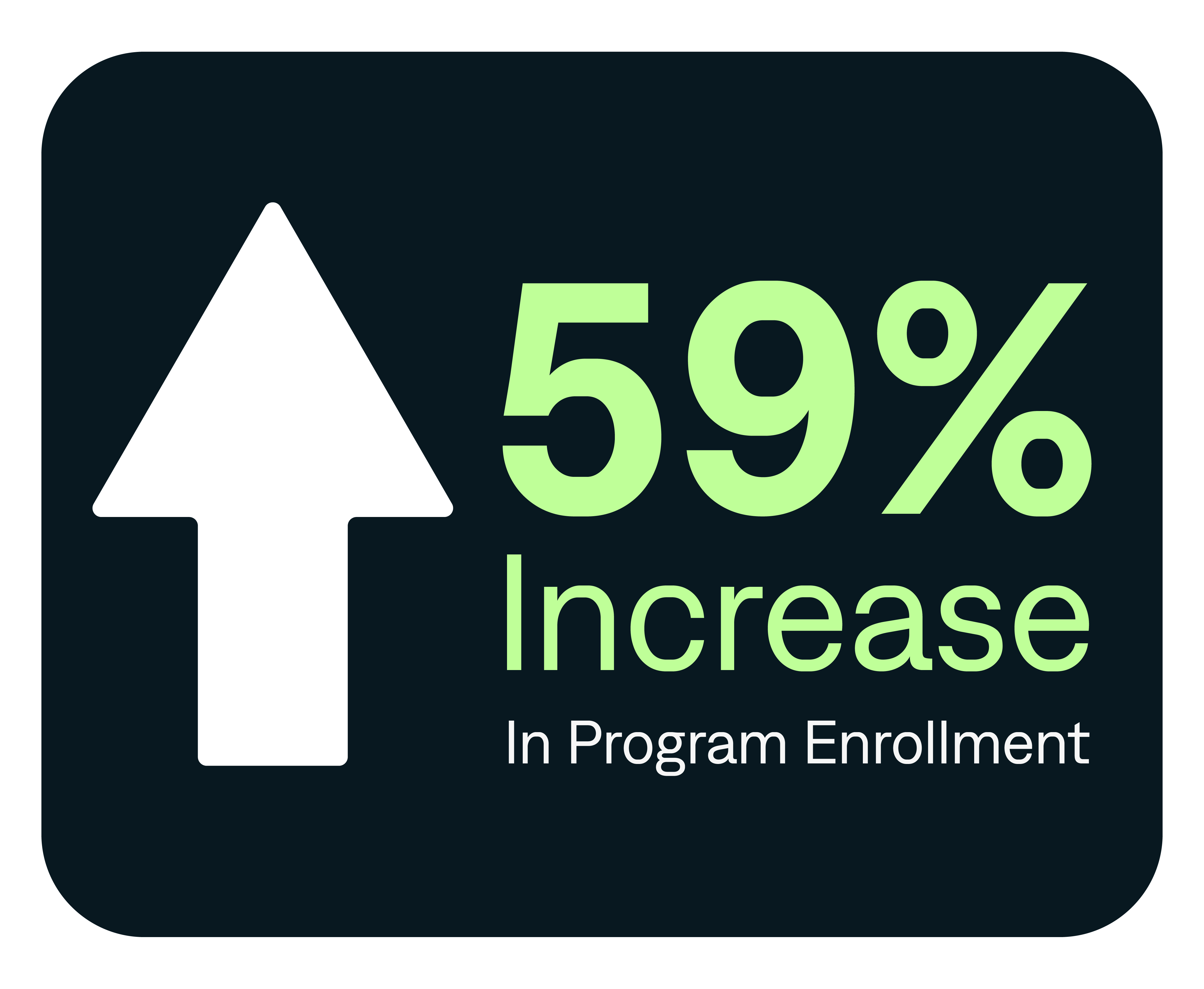 Program enrollment increased by 59%, achieved with only a 40% increase in staffing.