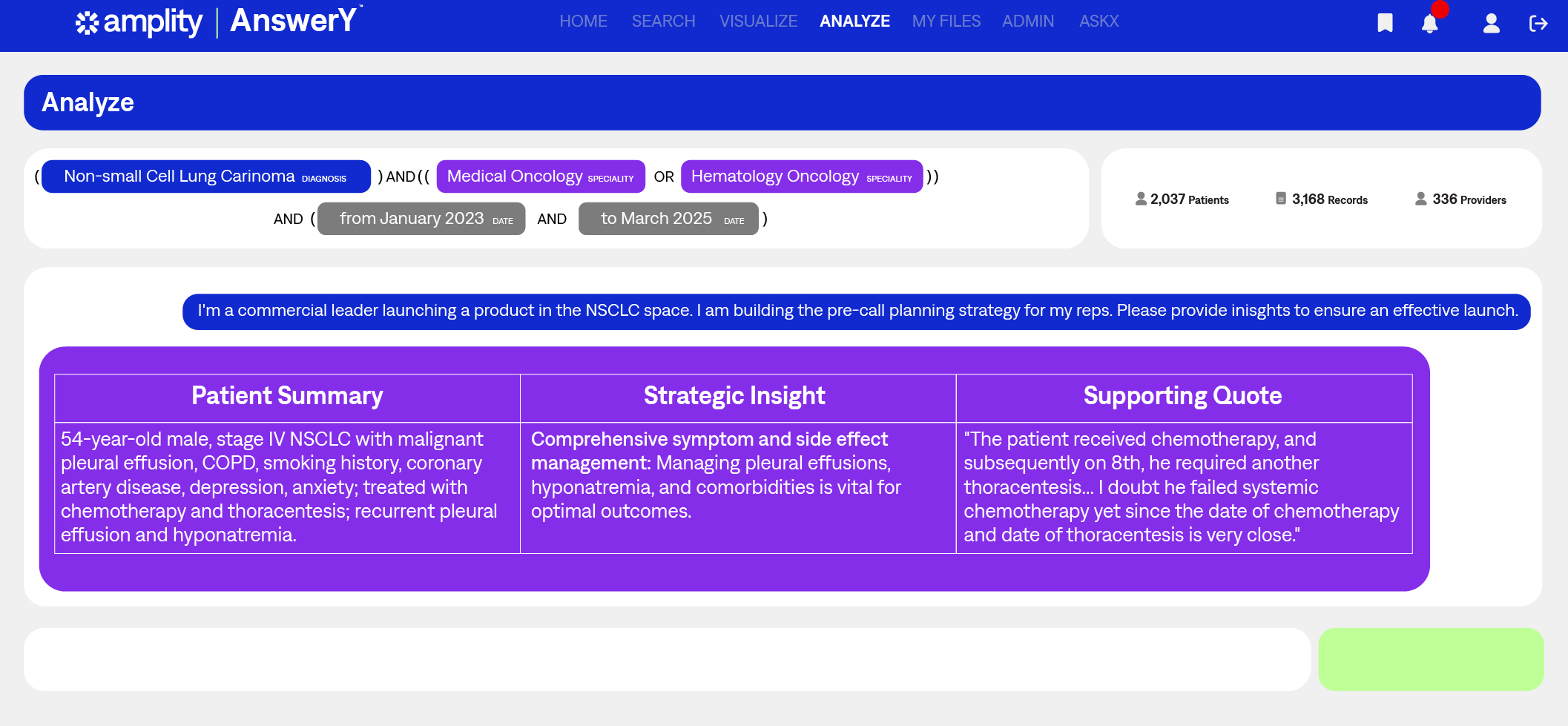 AnswerY turns millions of HIPAA-compliant-provider-patient conversations into actionable insights, giving your marketing, sales, medical and RWD the ability to create target lists and messaging to optimize your strategies.
